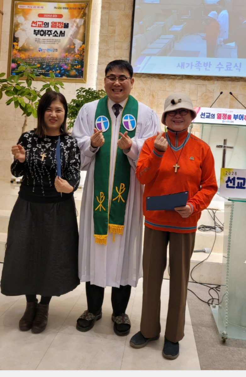 얼마전 김포지역에서 사역을 내려놓으신 김선임 전도사님과 신순희 사모, 그리고 곧 태어날 아이까지 모두 네 사람 뿐이었습니다.